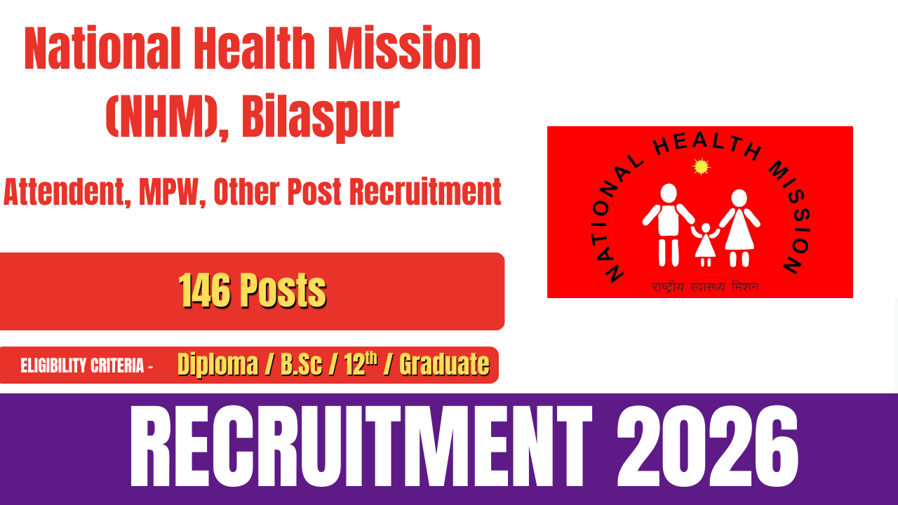 National Health Mission (NHM) Bilaspur has issued the official notification for NHM Bilaspur Recruitment 2026. The recruitment drive aims to fill 146 vacancies for the posts of Attendant, MPW, and other positions. Eligible and interested candidates can submit their applications online through the official website of NHM Bilaspur.