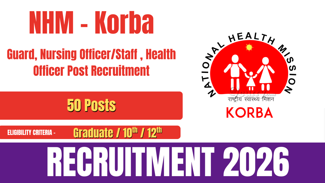 National Health Mission (NHM) Korba has released the official notification for NHM Korba Recruitment 2026. The recruitment drive is being conducted to fill 50 vacancies for the posts of Security Guard, Nursing Officer, Community Health Officer, Staff Nurse, and other positions. Eligible and interested candidates can apply offline after carefully reviewing the detailed notification.