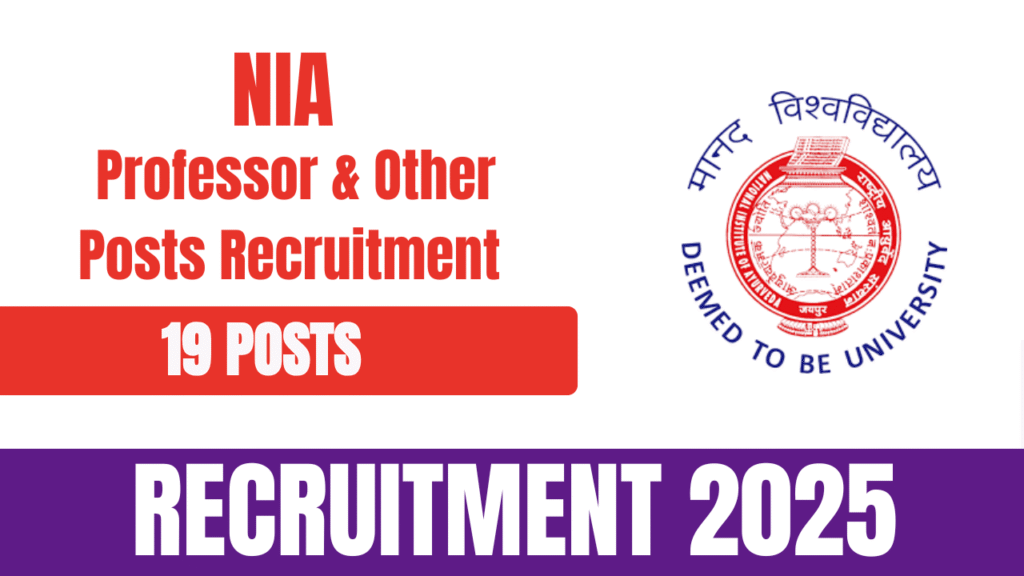 NIA Professor & Other Posts Recruitment 2025- How To Apply