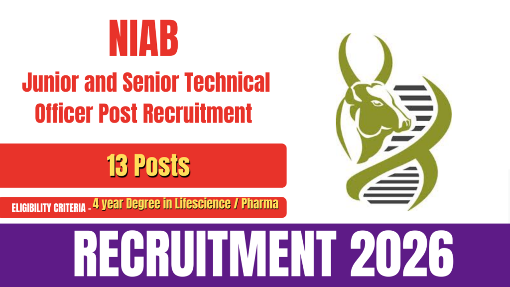 The National Institute of Animal Biotechnology (NIAB) has released the official notification for NIAB Recruitment 2026 to fill the posts of Junior Technical Officer and Senior Technical Officer. A total of 13 vacancies have been announced under this recruitment drive. Eligible and interested candidates can apply online through the official NIAB website. The online application … Continue reading NIAB Recruitment 2026- Apply for Junior Technical Officer and Other Posts