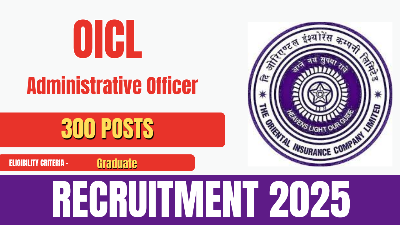 Oriental Insurance Company Limited (OICL) has released an official notification for the recruitment of Administrative Officer (AO) posts. A total of 300 vacancies have been announced. All eligible and interested candidates can submit their applications online through the official OICL website.