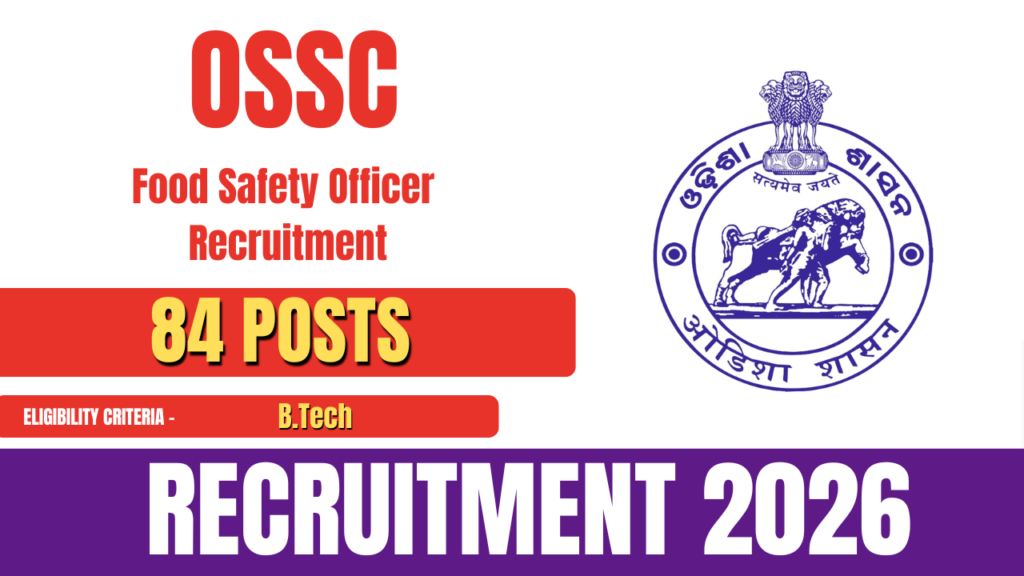 The Odisha Staff Selection Commission (OSSC) has released the official notification for the OSSC Food Safety Officer (FSO) Recruitment 2026. A total of 84 Food Safety Officer posts will be filled through this recruitment drive. Eligible and interested candidates can apply online by visiting the official OSSC website. The online application process for OSSC Food … Continue reading OSSC Food Safety Officer Recruitment 2026- How to Apply