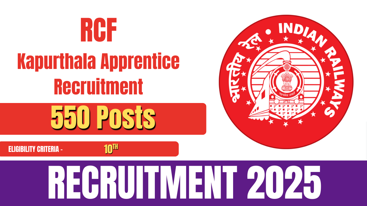 Rail Coach Factory (RCF), Kapurthala has released the official notification for RCF Kapurthala Apprentice Recruitment 2025. The recruitment drive aims to fill 550 apprentice posts across various trades. All eligible and interested candidates can submit their applications online through the official website of Rail Coach Factory, Kapurthala.
