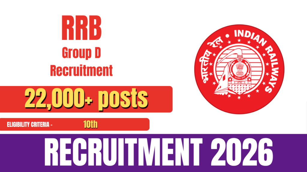 The Railway Recruitment Boards (RRB) have released the official notification for RRB Group D Recruitment 2026 for Level-1 posts. A total of 22,000+ vacancies have been announced. Eligible and interested candidates can apply online through the official RRB website. Complete details regarding the RRB Group D Level-1 Online Registration Application Form 2026 are provided in … Continue reading RRB Group D Recruitment 2026- How To Apply
