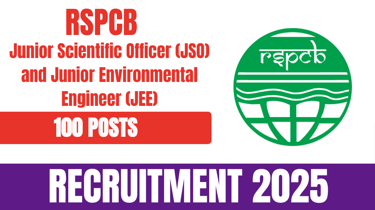 The Rajasthan State Pollution Control Board (RSPCB) has released an official notification for the recruitment of Junior Scientific Officer (JSO) and Junior Environmental Engineer (JEE). More than 100 vacancies are available across various categories. Eligible and interested candidates can submit their applications online through the official RSPCB website.