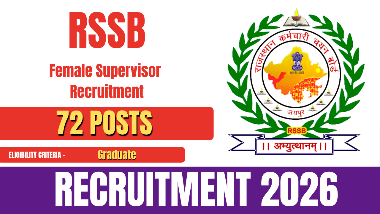 Rajasthan Staff Selection Board (RSSB) RSSB Female Supervisor Recruitment 2026, Eligibility, Age Limit, Fees, Selection, Salary, Apply Online, RSSB has released the official notification for the recruitment of Female Supervisor posts. There are a total of 72 vacancies. All eligible and interested candidates can apply online by visiting the official website of RSSB.