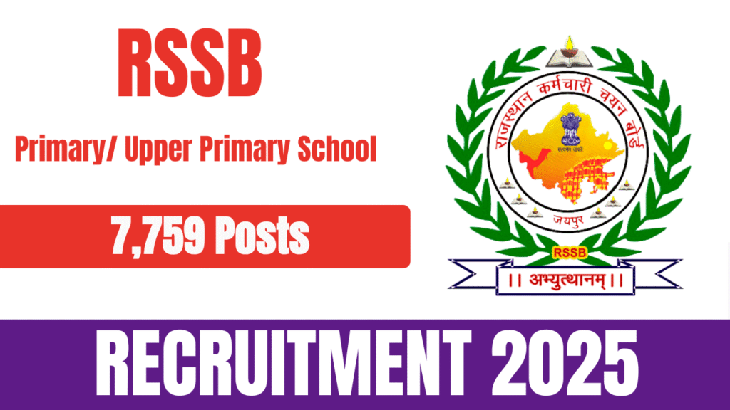 Rajasthan Staff Selection Board (RSSB) has released the official notification for the RSSB Primary and Upper Primary School Teacher Recruitment 2025. This recruitment drive aims to fill a total of 7,759 posts for primary and upper primary teachers. All eligible and interested candidates can apply online through the official website of RSSB. The online application … Continue reading RSSB Primary/ Upper Primary School Teacher Recruitment 2025