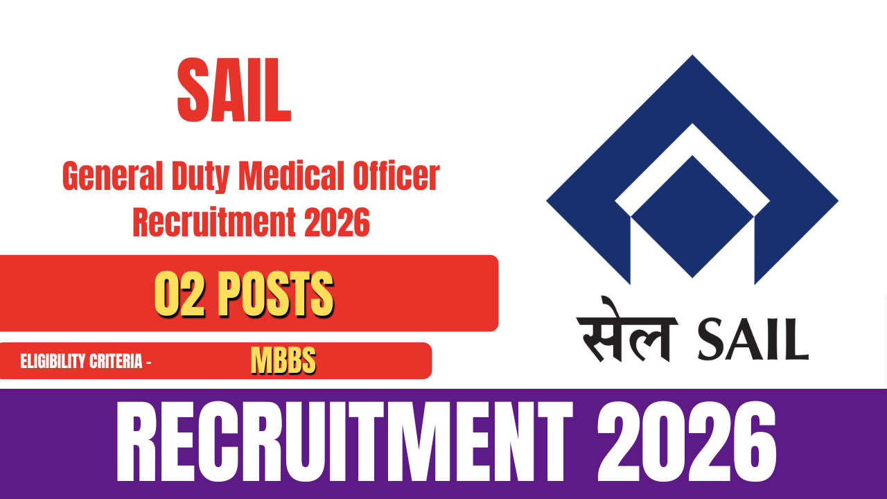 Steel Authority of India Limited (SAIL) has released an official notification for the recruitment of General Duty Medical Officer (GDMO) posts on a contract basis. A total of 02 vacancies have been announced under this recruitment. Candidates possessing an MBBS qualification are eligible to apply.