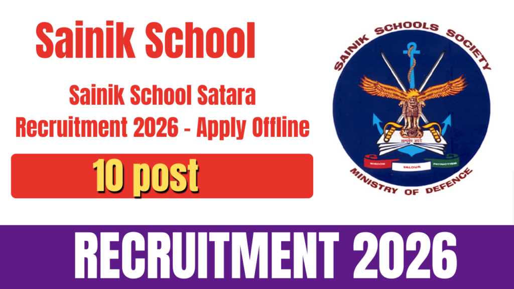 Sainik School Satara Sainik School Satara Recruitment 2026, Eligibility, Age Limit, Fees, Selection, Last Date, Apply Offline, Sainik School Satara has released the official notification for recruitment to the posts of TGT (Various Subjects), Art Master, Music Teacher, Laboratory Assistant (Physics), and School Medical Officer. There are a total of 10 Posts. All eligible and … Continue reading Sainik School Satara Recruitment 2026 – Apply Offline