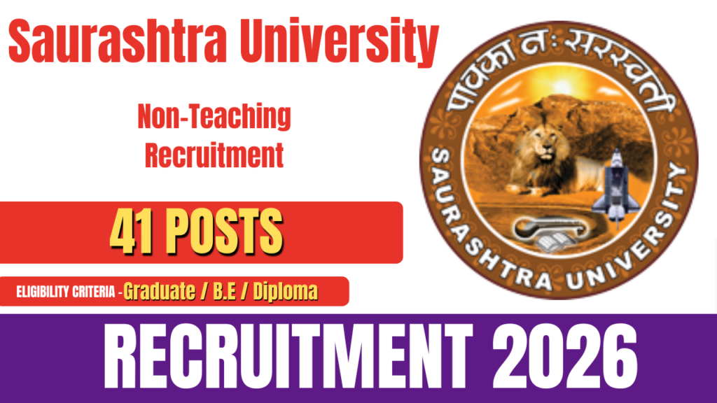 Saurashtra University Non-Teaching Recruitment 2026: Eligibility, Age Limit, Fees, Selection Process & Online Application Saurashtra University has released the official notification for the recruitment of various non-teaching posts. A total of 41 vacancies have been announced under this recruitment drive. Eligible and interested candidates can apply online through the official website of Saurashtra University. The … Continue reading Saurashtra University Non-Teaching Recruitment 2026- How to Apply