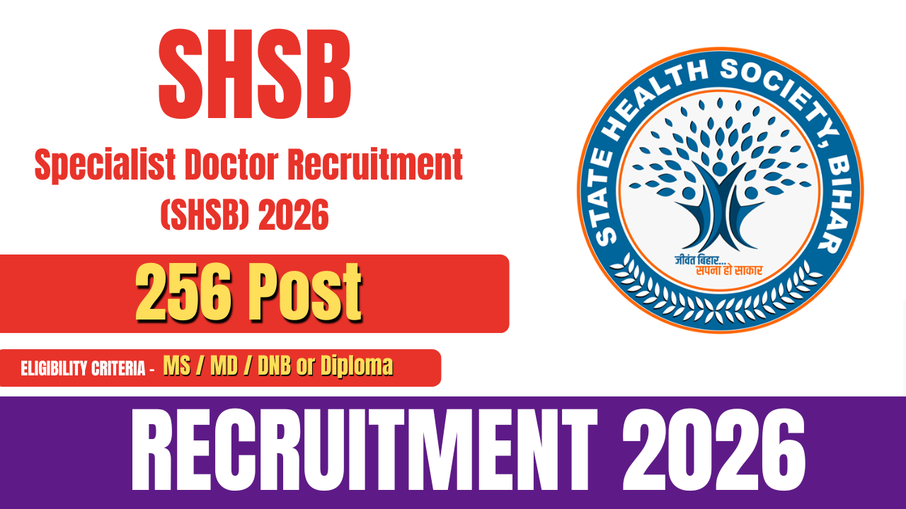 The Bihar State Health Society (SHSB), through BPSC, has issued an official notification for the recruitment of Specialist Doctors. A total of 256 vacancies have been announced under this recruitment drive. Eligible and interested candidates can apply online through the official SHSB website.