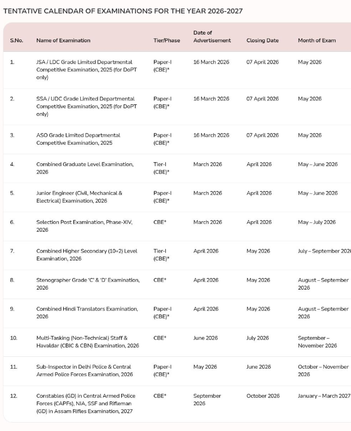 | SSC Exam Calendar 2026-27 |