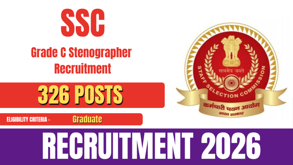 Staff Selection Commission (SSC) has released the official notification for the SSC Grade C Stenographer Limited Departmental Competitive Examination (LDCE) 2025 under SSC Grade C Stenographer Recruitment 2026. A total of 326 vacancies have been announced for this recruitment. Eligible and interested candidates can apply online through the official SSC website within the specified application … Continue reading SSC Grade C Stenographer Recruitment 2026- Apply Online