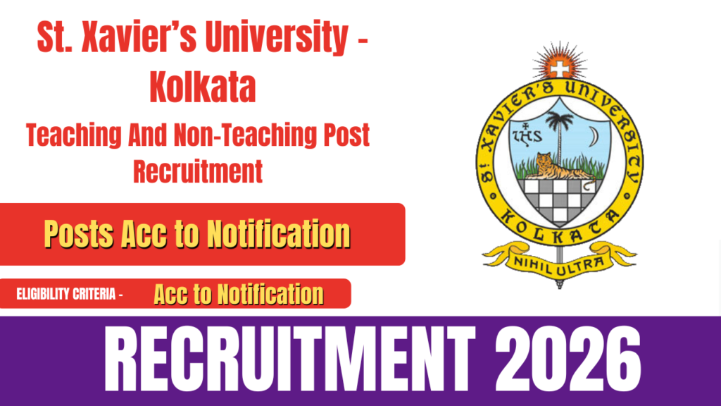 St. Xavier’s University, Kolkata has released an official notification for ST Xaviers University Recruitment 2026 for various teaching and non-teaching posts. Interested and eligible candidates can apply online through the university’s official website. The online application process started on 17 February 2026, and the last date to apply is 23 March 2026. The age limit … Continue reading ST Xaviers University Recruitment 2026- Apply for Teaching and Non-Teaching Posts