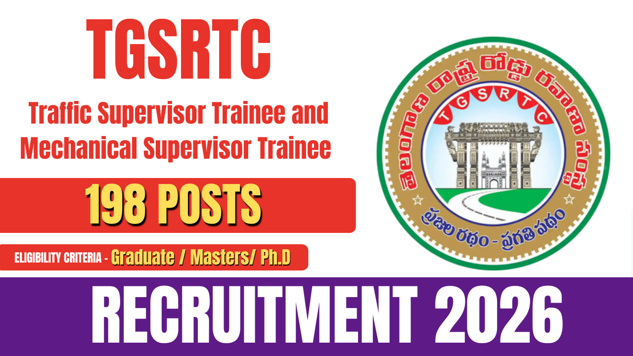 Telangana State Road Transport Corporation (TGSRTC) has released an official notification for TGSRTC Recruitment 2026 to fill 198 vacancies for the posts of Traffic Supervisor Trainee and Mechanical Supervisor Trainee. Candidates who hold a graduate degree or diploma are eligible to apply for these posts. Interested and eligible applicants can submit their applications online through the official TGSRTC website within the prescribed time limit.