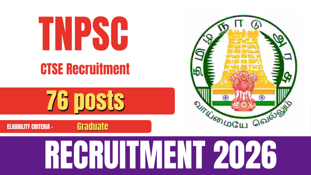 The Tamil Nadu Public Service Commission (TNPSC) has released a new notification for the TNPSC CTSE Recruitment 2026. This recruitment drive aims to fill 76 vacancies for posts including Assistant Manager, Manager, and other positions. Candidates who possess an LLB degree are eligible to apply. Interested and eligible applicants can submit their applications online through … Continue reading TNPSC CTSE Recruitment 2026- Apply for Assistant Manager and Other Posts