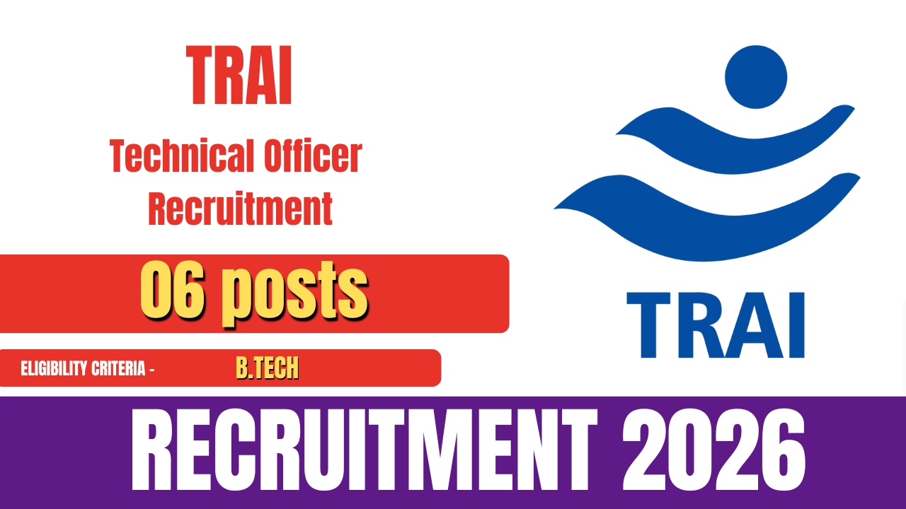 The Telecom Regulatory Authority of India (TRAI) has released the official notification for the recruitment of Technical Officer posts. A total of 06 vacancies have been announced. Eligible and interested candidates can apply online through the official TRAI website.