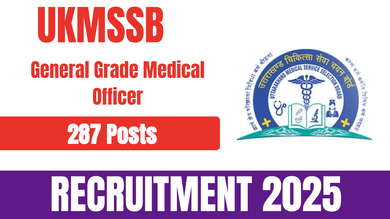 Uttarakhand Medical Services Selection Board (UKMSSB) has released the official notification for the General Grade Medical Officer Recruitment 2025. A total of 287 vacancies have been announced. Eligible and interested candidates can apply online through the official UKMSSB website.
