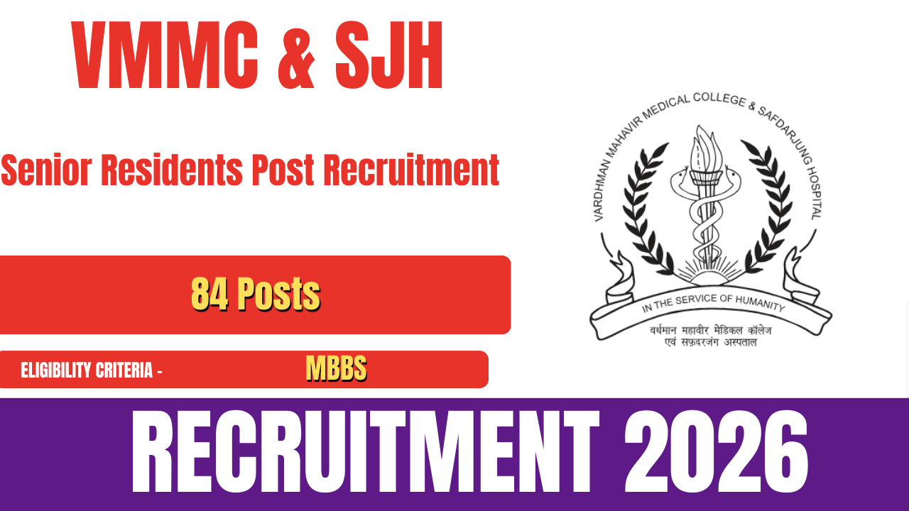 Vardhman Mahavir Medical College & Safdarjung Hospital has released an official notification for VMMC & SJH Senior Resident Recruitment 2026. The recruitment drive is being conducted to fill 84 posts of Senior Residents on a contract basis. Eligible and interested candidates can participate in the walk-in interview as per the details mentioned in the official notification.