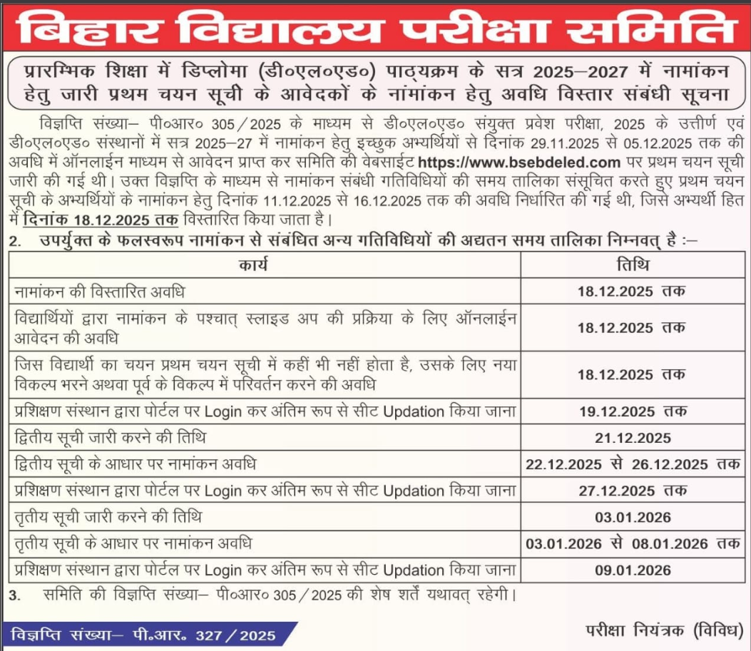 | Bihar BSEB DELED 2nd Selection List 2025-27 |